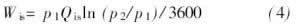 式中, Wis為該入口壓力時泵的等溫壓縮功率, 單位為KW, 其中, 等溫壓縮功率Wis的計算公式為