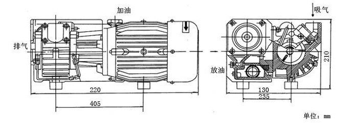 七、XD型旋片式真空泵的安裝尺寸圖: